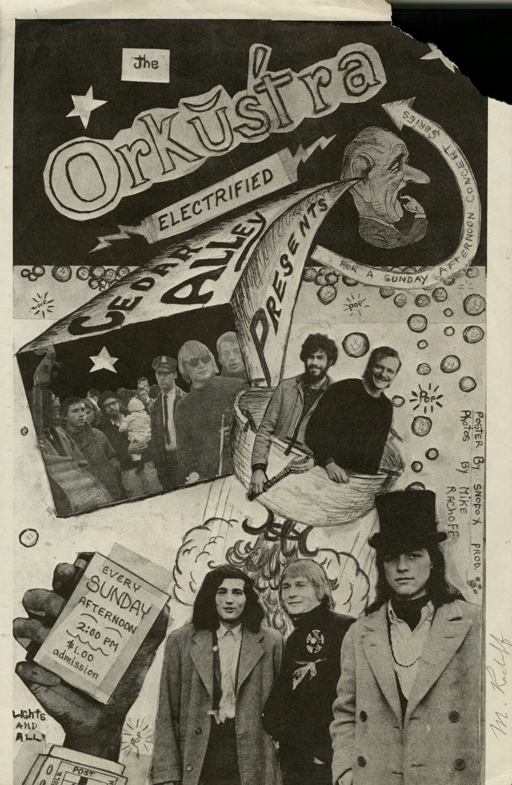 The Orkustra’s outlook fit neatly with the Diggers emphasis on autonomous group spaces. Beausoleil explained why the group preferred nightclubs to the Fillmore auditoriums. “Smaller venues are more intimate, increasing the likelihood that the energies of the audience and the performers will become commingled in a transcendent experience.” Just as happened at the Invisible Circus.